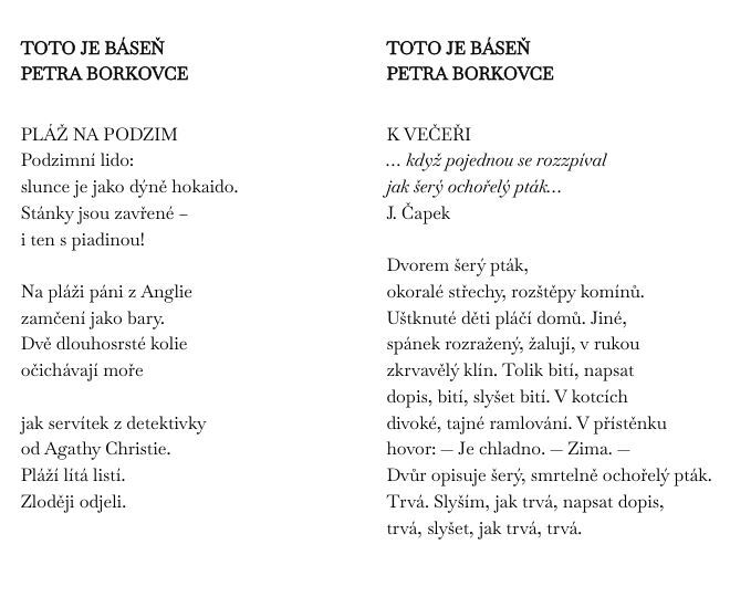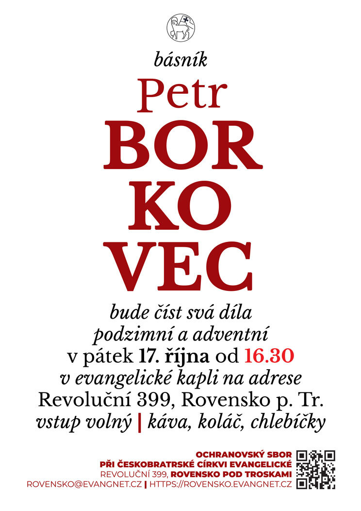 17. října | 16.30 Autorské čtení básníka Petra Borkovce. |plakát |první ukázka |druhá ukázka